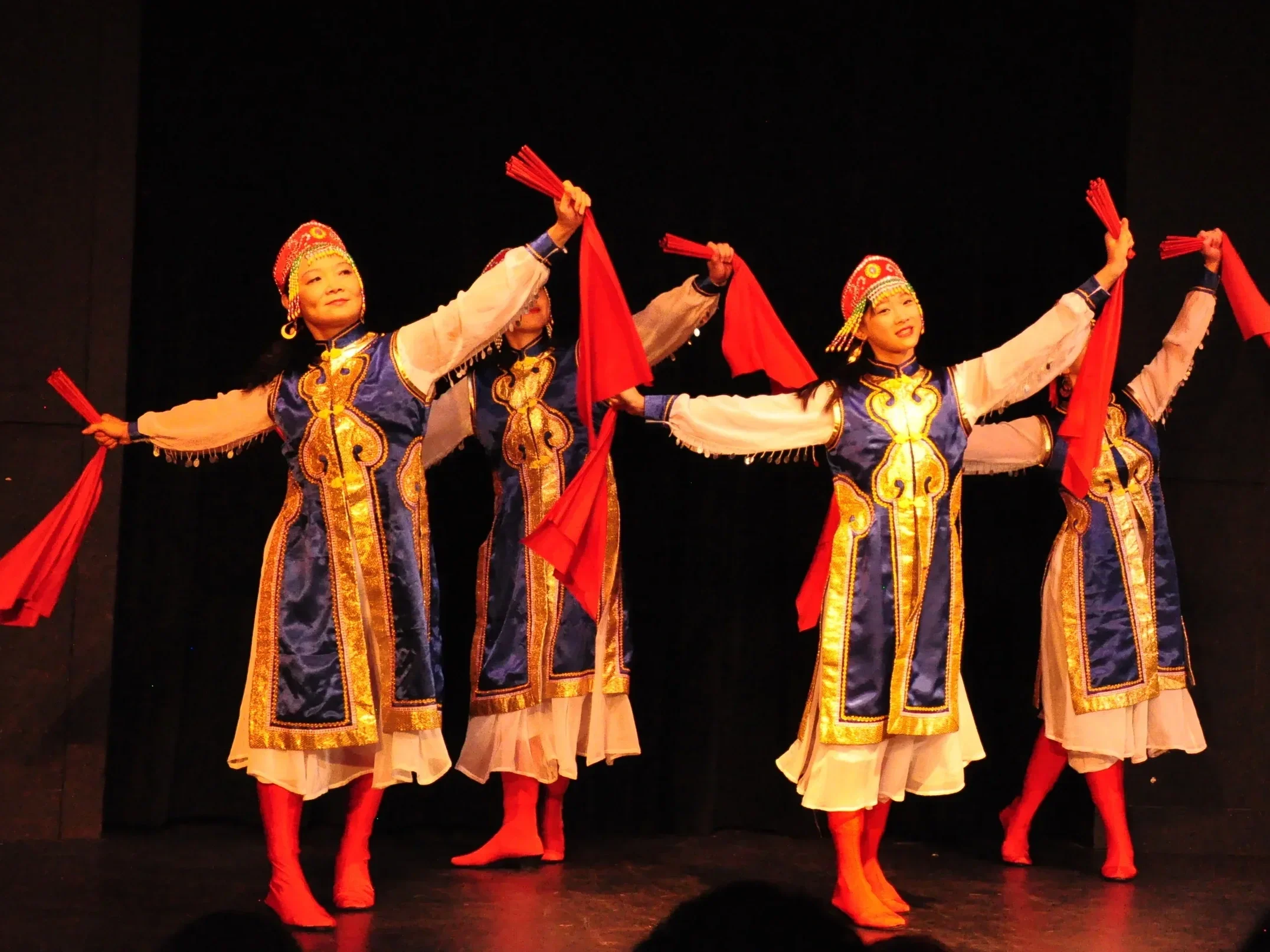 Within our dance group, we focus on all kinds of folk, classical, and ethnic dances. China consists of approximately 56 ethnic groups. The Han Chinese is the ethnic majority, but our group also displays ethnic minorities such as Dai, Yi, Yao, Miao, Zhuang, Uyghur, Tibetan, Mongolian, and more. Each dance is accompanied by a traditional costume and Chinese music, with characteristics reflecting the cultural and historical background of the unique ethnic group. A variety of props are used including fans, umbrellas, chopsticks, ribbons, swords, handkerchiefs, chopsticks, etc.